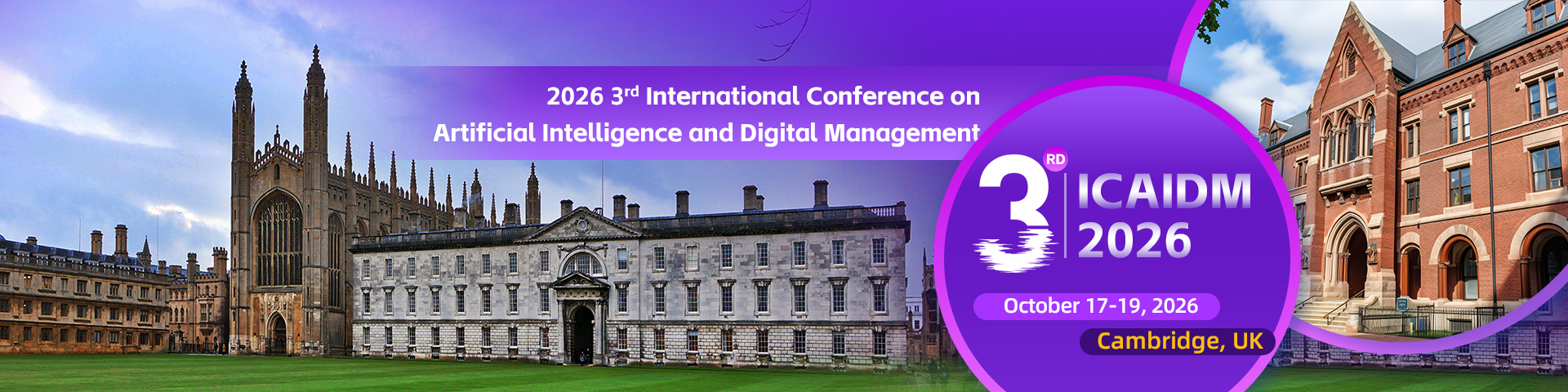 2026 3rd International Conference on Artificial Intelligence and Digital Management (ICAIDM 2026) will be held as a sister event of the 2026 7th International Conference on Education, Knowledge and Information Management (ICEKIM 2026). This co-located conference will take place from October 17-19, 2026, in Cambridge, UK, and is jointly organized by Anglia Ruskin University, UK, and Northeastern University, China.